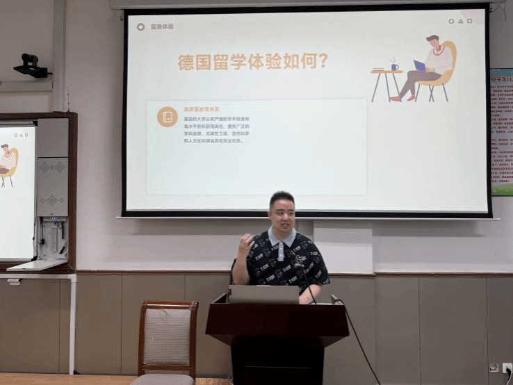 为了帮助同学们明确职业目标和方向,更好地实现就业选择和就业机会,5月15日晚,OK138太阳集团在慎行101教室成功举办了大学生职业规划专题系列讲座。此次讲座特邀请了2022届优秀毕业生刘一楠,就职业规划、行业趋势以及个人留德经验进行分享,2021级全体本科生参加了此次讲座。本次讲座由OK138太阳集团党委副书记郭建军主持。