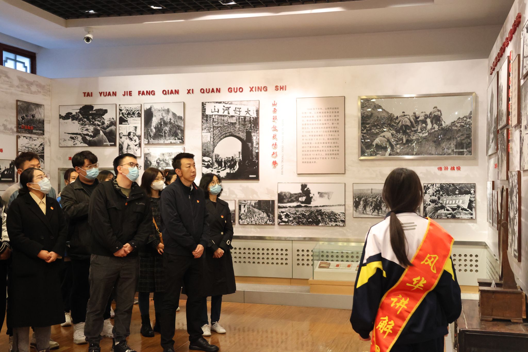 在讲解员的带领下,全体师生共同参观了解放太原展览区,聆听了中共太原党组织创立、红军东征、米峪镇战斗、攻克太原的岁月故事,更为深刻地感受到了共产党人 “坚持真理、坚守理想,践行初心、担当使命,不怕牺牲、英勇斗争,对党忠诚、不负人民”的伟大建党精神。师生们在第一、第二两个展厅中,认真敬读每一段文字,倾听解放太原每一段战斗史实,体会着中国共产党的伟大精神,感受着历史川流不息,精神代代相承的岁月之歌。