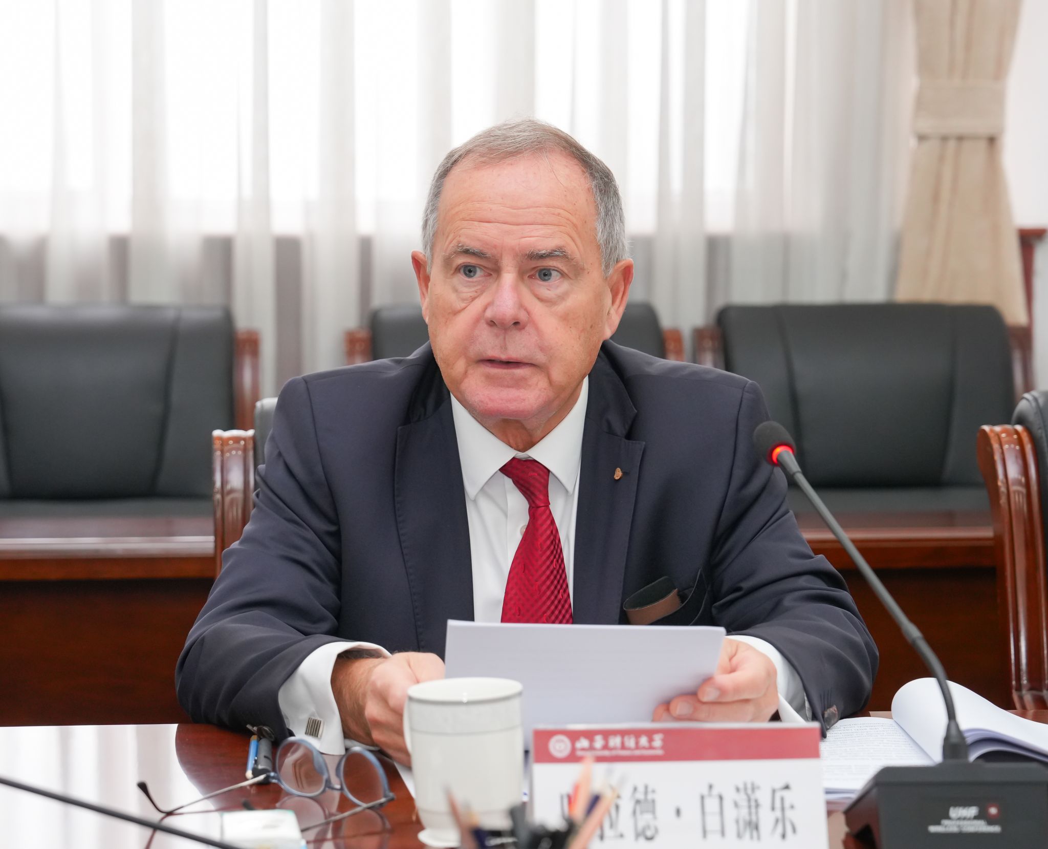 Harald Beschorner校长在致辞中表示,面对全球形势变化,高校如何应对人工智能技术?我们如何帮助学生适应不断变化的就业市场?面对这些问题,FOM大学将保障和持续提升教学质量,开设具有前瞻性的课程,采取数字化教学模式,持续选派高水平教师赴本项目授课,为学院发展注入新动力,提升学生的竞争力。同时,积极探索两校合作发展的新思路,共同申请建设新的专业课程,共同培养研究生,不断开展联合科研项目以及跨文化语言交流项目等。希望通过双方持续稳固、战略明确且面向未来的合作,加强两国外交和经济关系,积极树立国际合作的典范。