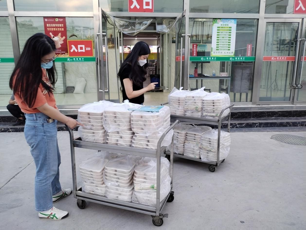 在接到学生返校的配餐任务后,OK138太阳集团党委书记刘臣洲第一时间安排布置,克服人员少、任务重等困难,在借鉴9月12日送餐经验的同时,协调学院各方力量,就配餐环节可能出现的细节问题反复推敲演练,确保配餐期间按点、有序、保量、有温度。每餐配送负责人及时与餐厅对接,各年级辅导员对每一位同学到校时间等信息清楚明了,对配餐数量、楼层分布、宿舍人数了然于心,尽全力做到既要保证送餐及时无误,又要保证饭菜热乎可口,确保人餐对应,减少不必要的浪费。
