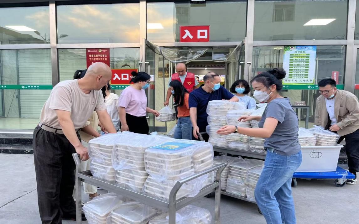 学院各位领导老师化身“三餐守护者”,一直默默的坚守在“温饱一线”,他们不辞辛劳,坚守阵地。手中热气腾腾的饭盒就像照亮校园的一束光,温暖着学生的心。