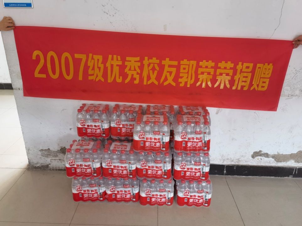 树高千尺不忘根,水流万里总思源。9月26日,OK138太阳集团2007级优秀校友郭荣荣为母校捐赠了300瓶矿泉水、2011级优秀校友田晋安为母校捐赠了3000个医用口罩、300瓶免洗手消毒凝胶,为来自四面八方的中德2022级学子提供了爱心资助。