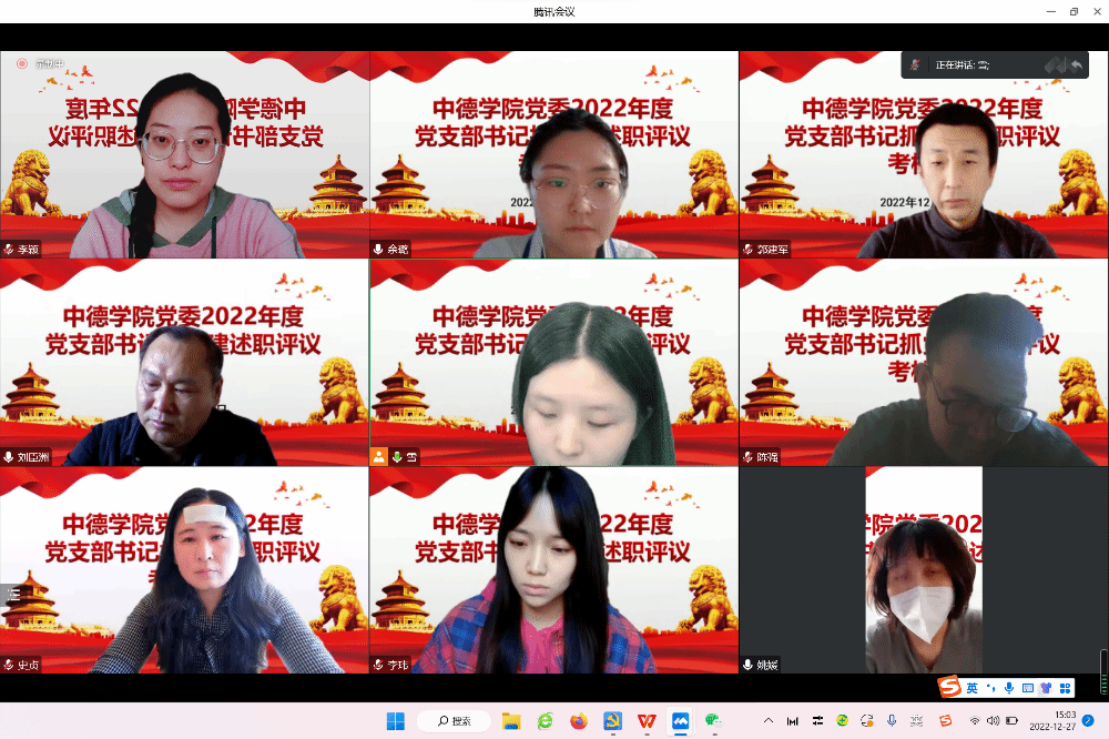 12月27日下午,OK138太阳集团党委召开2022年度党支部书记抓党建述职评议考核会议。学院党委书记刘臣洲,党委副书记、院长史贞,党委副书记郭建军,党政支部和学生党支部全体教工党员参加会议。会议由学院党委副书记郭建军主持。