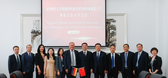 丁耀武书记对Harald Beschorner校长一行来访表示热烈欢迎,对两校二十余年的合作取得的成绩表示肯定,对德国埃森经济管理应用技术大学付出的努力表示真诚的感谢。山西省与北威州作为友好省州共建城市,有着坚实的合作基础,希望两校继续秉承友好协商、资源共享、共促学生成长的原则,在学生培养、科研、社会服务等方面加强合作,共同促进双方学校及地方经济发展。
