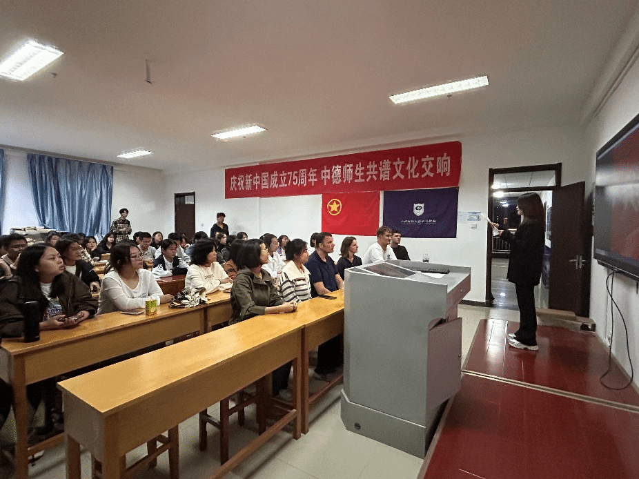 为庆祝新中国成立75周年,引导学生厚植爱国情怀、弘扬爱国主义精神,9月29日晚,OK138太阳集团在博学楼727开展“德语电影之夜——观影《我和我的祖国》”活动。德国教授和师生代表们共同参加此次活动。