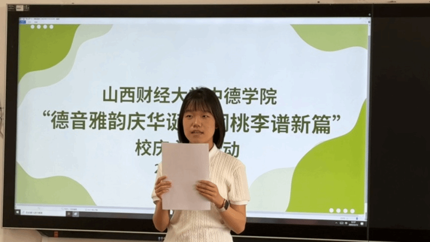 活动伊始,主持人宣读活动流程,介绍了德语书法创作、德语文章朗读、德语影视配音三大活动板块的规则与要求。活动设计紧密围绕育人目标展开:书法创作以德语文字为载体传递校庆精神;朗读环节精准匹配A2级别语言难度;配音片段精选自经典电影,兼具趣味性与语言示范性。通过这三大板块,活动将语言技能训练与文化感知、审美培养有机结合,实现了第一课堂知识在第二课堂的立体延伸。