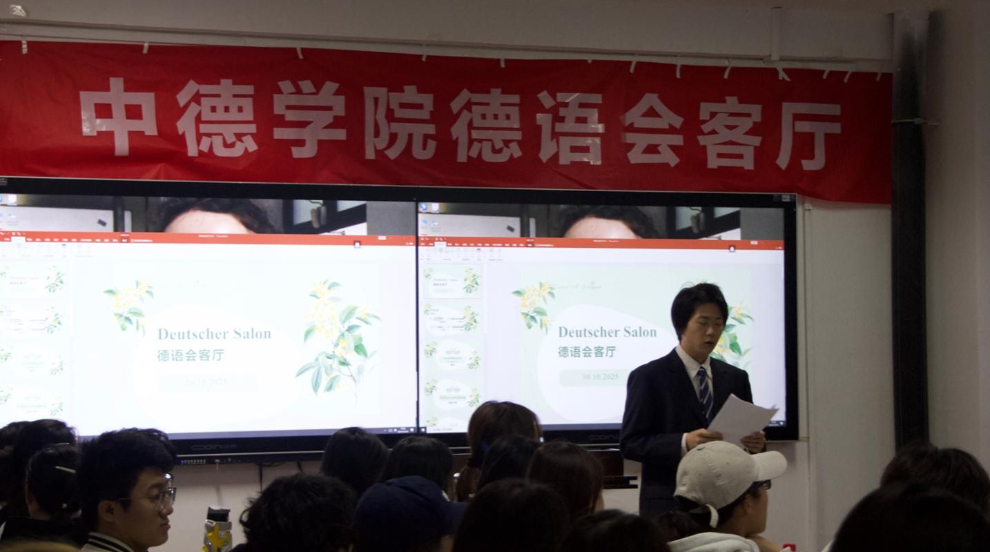 为丰富我院大一年级新生的学习体验,拓展同学们的课余生活,进一步提升大家的口语表达能力,增进对德国文化及外教的了解,10月30日19:30,OK138太阳集团第五期德语会客厅活动在博学楼727教室顺利举办。两位德方教授Dr. Guido Bohnenkamp、Dr. Andreas Stoffers,两位德方助教Lutz Legge、Janine Doan,多位德语教师及大一新生共同参与了本次活动。2023级金融班李厚德同学担任主持。