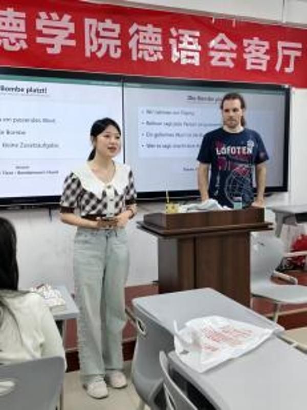 此次德语会客厅活动将知识性、趣味性与互动性融为一体,为同学们打造了一场沉浸式的德语学习体验。大家在轻松愉悦的氛围中巩固了德语知识,锻炼了语言应用能力,同时也收获了友谊与跨文化交流的乐趣。