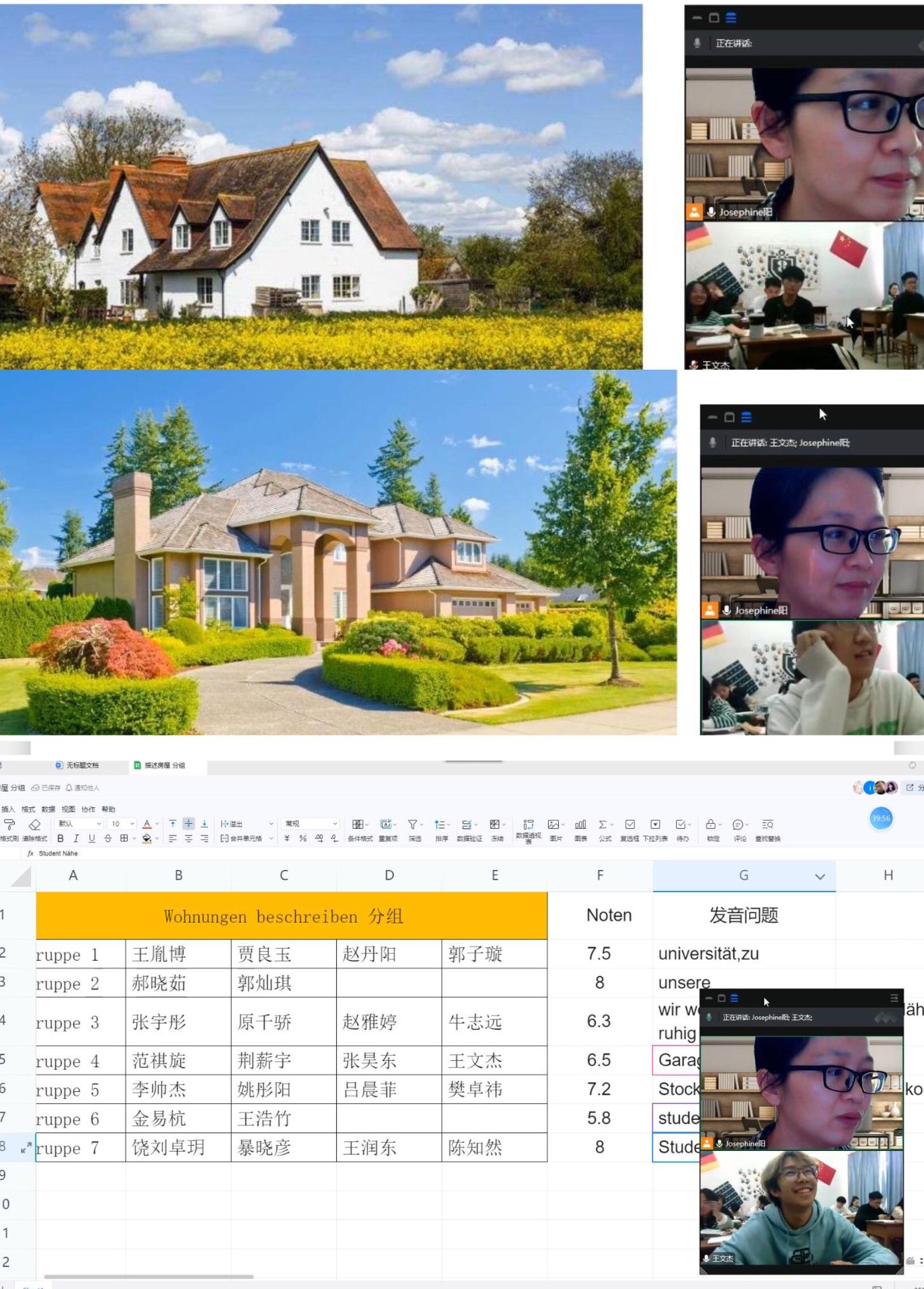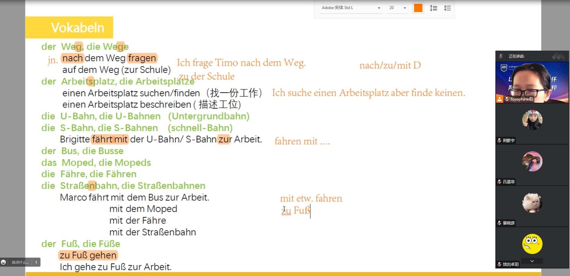 每天开始德语教学前,我会把本周已经学过的单词听力给同学们播放一次,要求所有同学开摄像头跟读,营造良好的德语学习的氛围,也提高了学生发音的准确性。