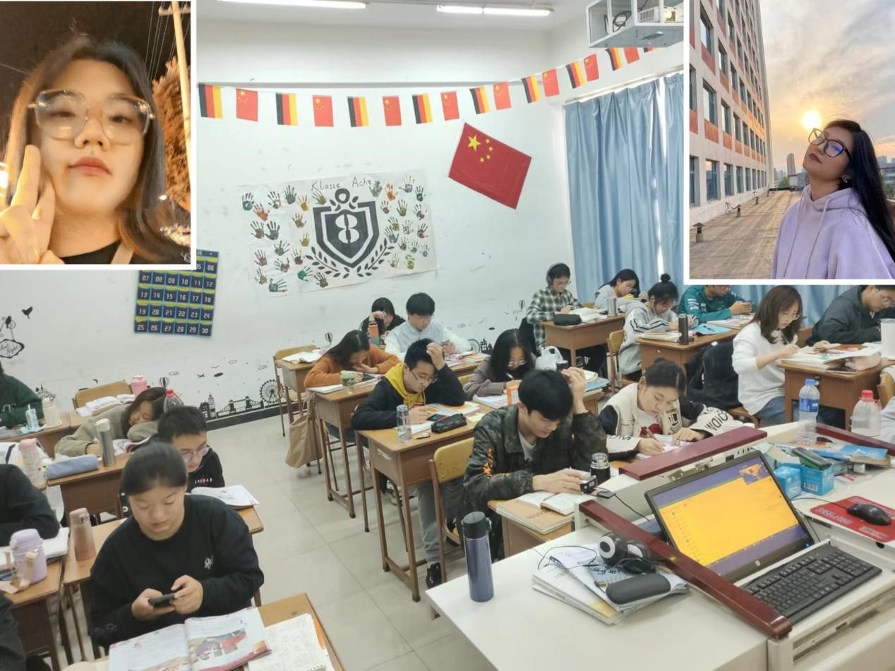 另外,来自大二大三的助教学姐在德语学习上也给了同学们很大的帮助,每天晚自习开始前我都会和助教们说一下今天复习内容的重点,以及哪位同学的发音需要她们帮忙纠正,在她们的监督和协助下,大家学习效率和效果都有了明显的提升。
