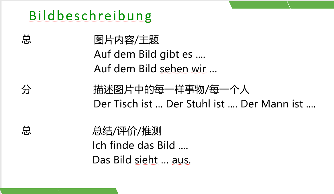 2.将德语基础复习穿插到每个单元的学习。经过一段时间的假期,尽管每天都有口语和听力打卡任务,学生们需要一些适应学校作息、找回学习状态的时间。不过本学期的教学任务依然艰巨,有大约16个单元需要学习。因此,我将对A1的复习任务穿插到每周进行,并且主导者为学生:口语表达复习分配为小组任务,由小组进行情景剧的展示,使课堂更加生动活泼;语法复习同样由学生进行,某位学生担任教师身份,自己讲解、并进行课堂互动等等,我来进行补充和语法练习。