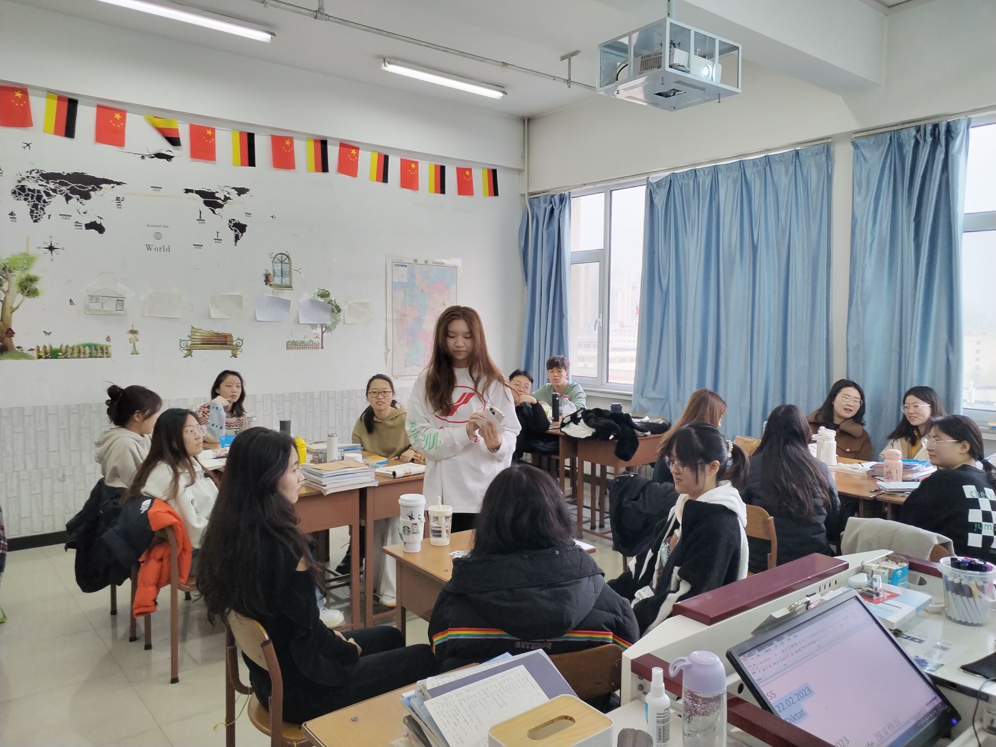 第一周的德语教学工作在学院领导的指导下顺利开展,我很高兴能跟同学们如往常一样,在教室共同学习和进步,我也将以更加完备的教学资料、更加高昂的热情,努力为学生们带来更加生动活泼、高效优质的德语课堂。(德语教研室教师 王萌莎供稿)
