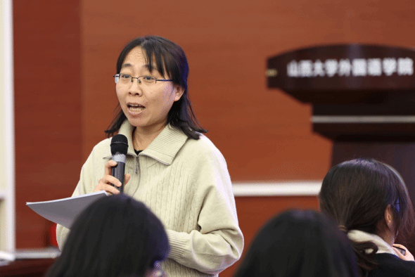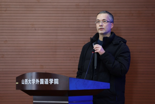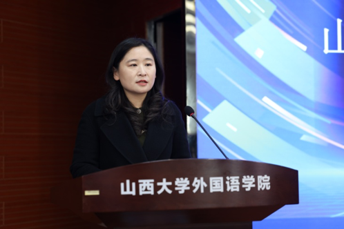 山西大学外国语学院院长杨林秀教授在致辞中表示:“本次大赛为同学们提供了一个展示德语语音才华的绝佳平台,增强了同学们讲好中国故事的能力,希望大家珍惜机会,赛出风格,赛出水平,运用好德语这一桥梁,将中国声音传递得更加悠扬深远,展现出新时代德语学子的风采。”