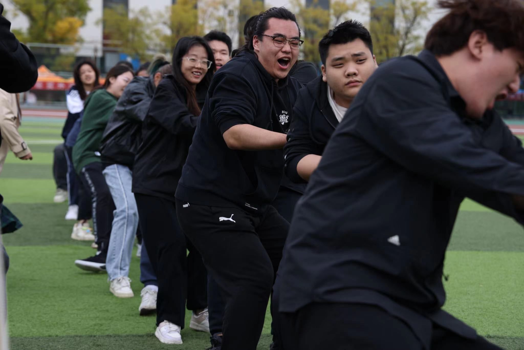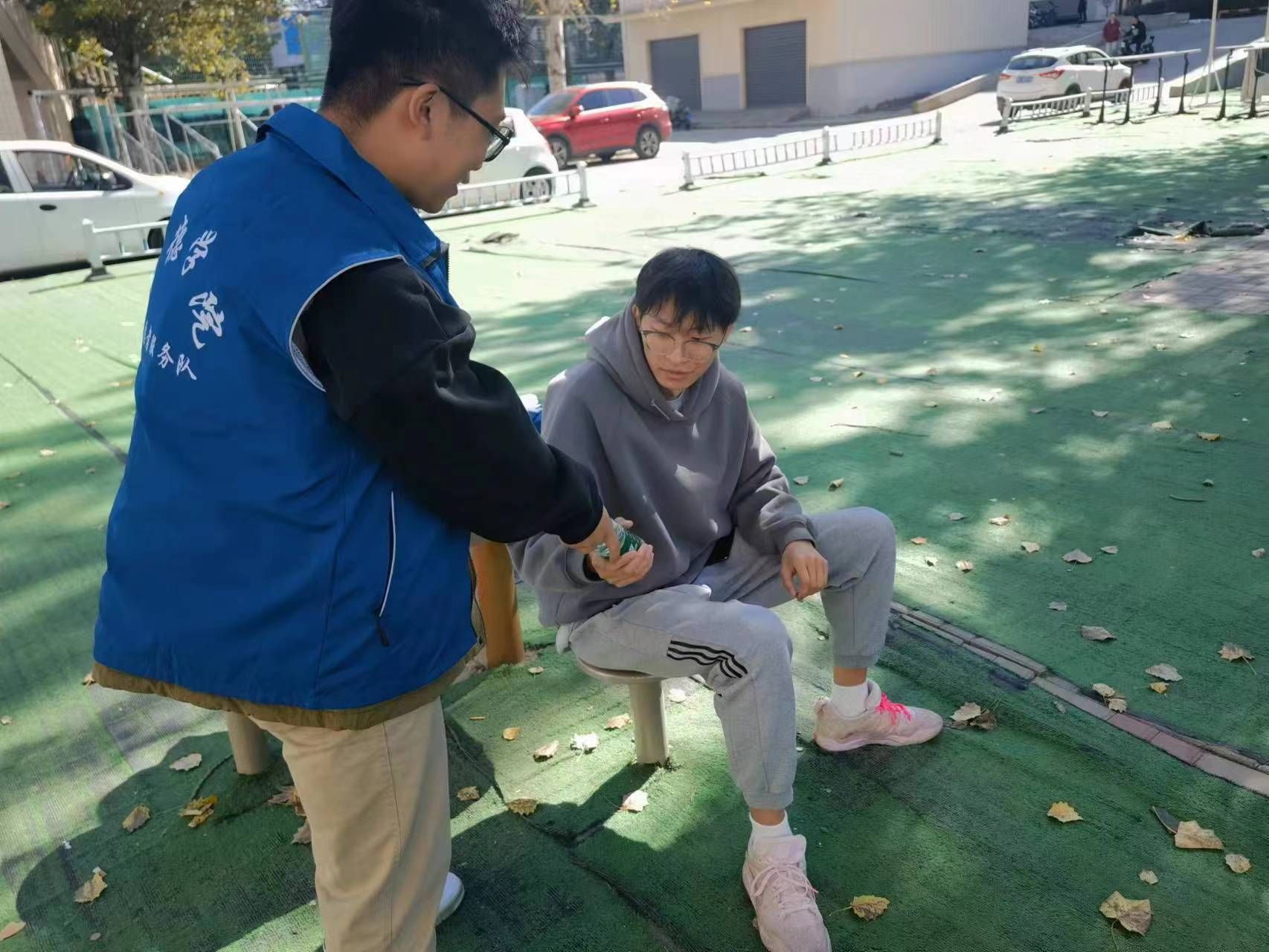 赛场下,老师们积极到场,融入其中,为运动员加油鼓劲。志愿者们分工明确,工作负责,保障了后勤工作的有序进行,为运动员和同学们提供了优质的服务。是运动员们最有力的支持和保障,是运动员们的“定心丸”。