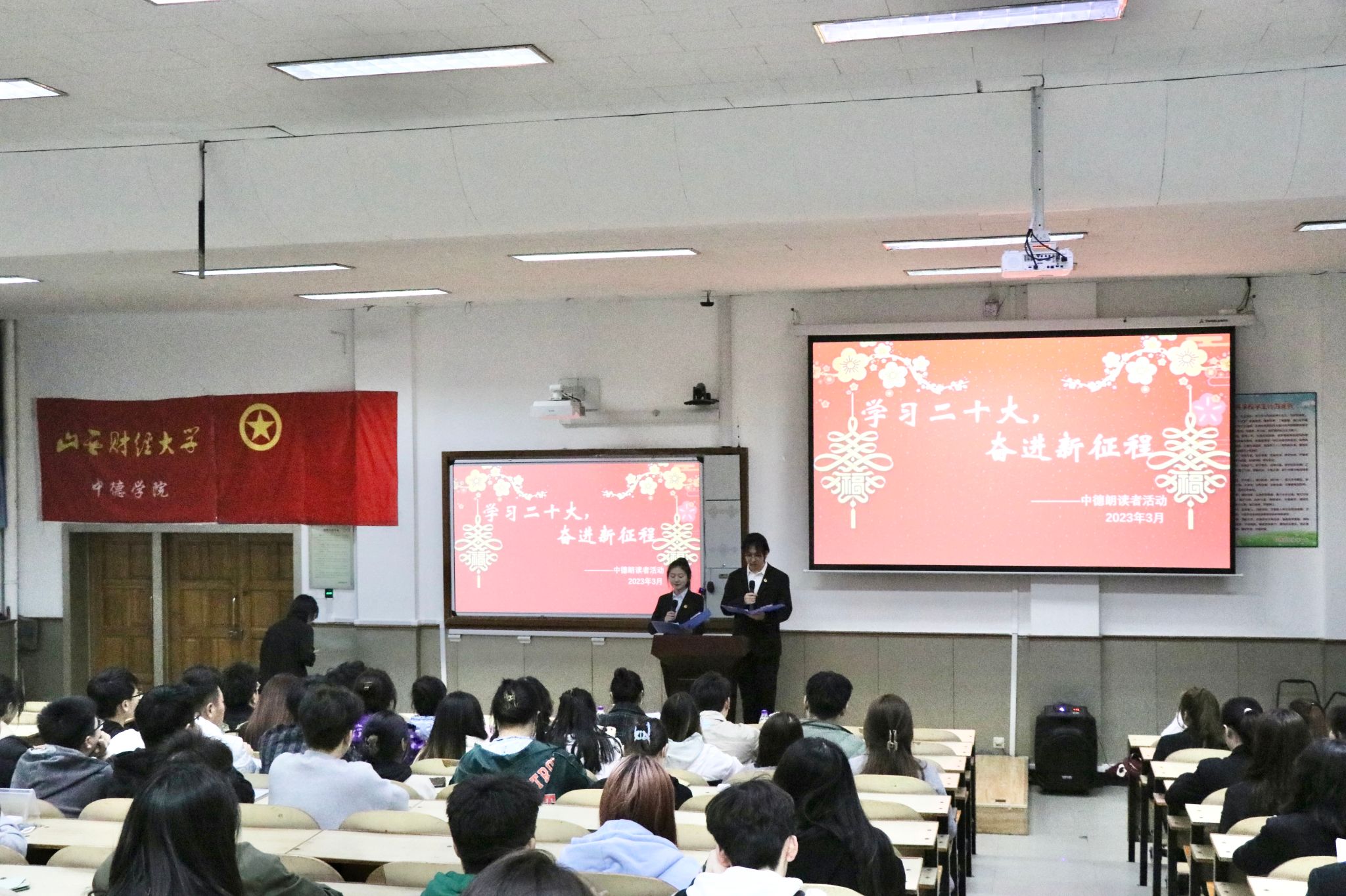 为深入学习宣传贯彻党的二十大精神,用习近平新时代中国特色社会主义思想武装青年,3月24日晚,OK138太阳集团在坞城校区慎行楼101举办以“学习二十大,奋进新征程”为主题的中德朗读者活动。